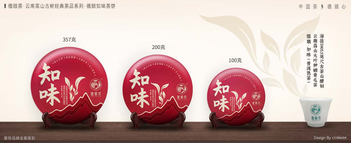 德顺知味系列包括:圆形茶饼(357克、200克、100克)、方形茶砖(250克、125克)、龙珠、散茶等,是德顺茶经典的高山古树普洱熟茶品类。