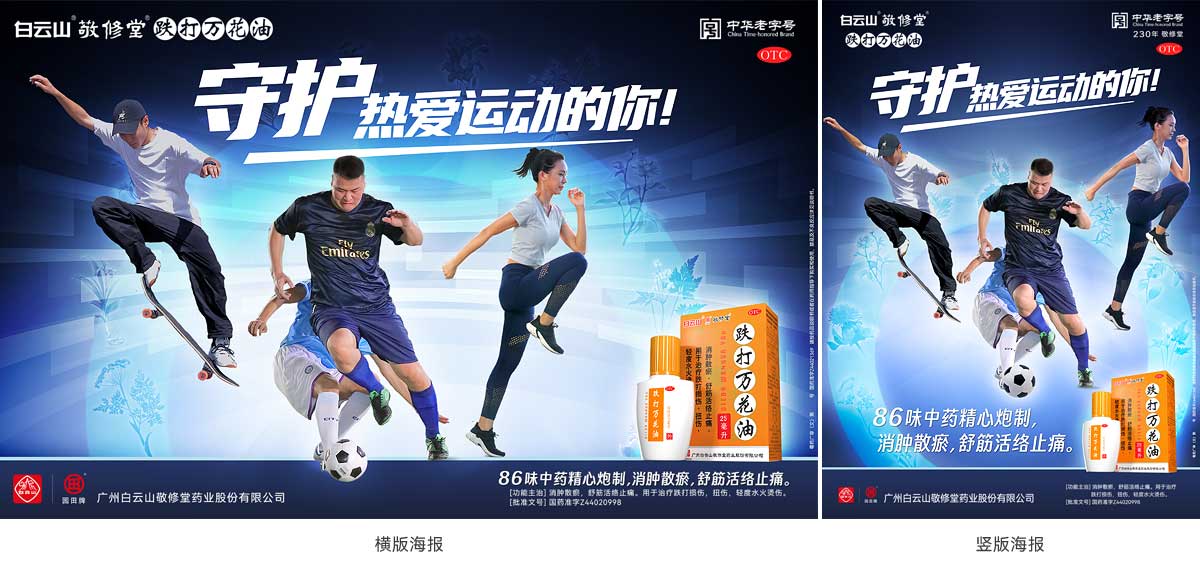 聚势核心团队以一站式品牌创意整合项目的策划思路,为敬修堂跌打风湿大品类(跌打万花油&麝香跌打风湿膏)策略加持、创意赋能、制作加分,全面专业化服务支持,配套系列化视觉创意、终端平面广告、营销互动及整合传播建议等,实现合作共进。