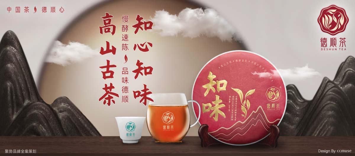 我们为德顺知味系列提炼的广告语是:“高山古茶,知心知味”,辅助说明文案:“速陈原叶古树香,未到舌下莫谈茶”。