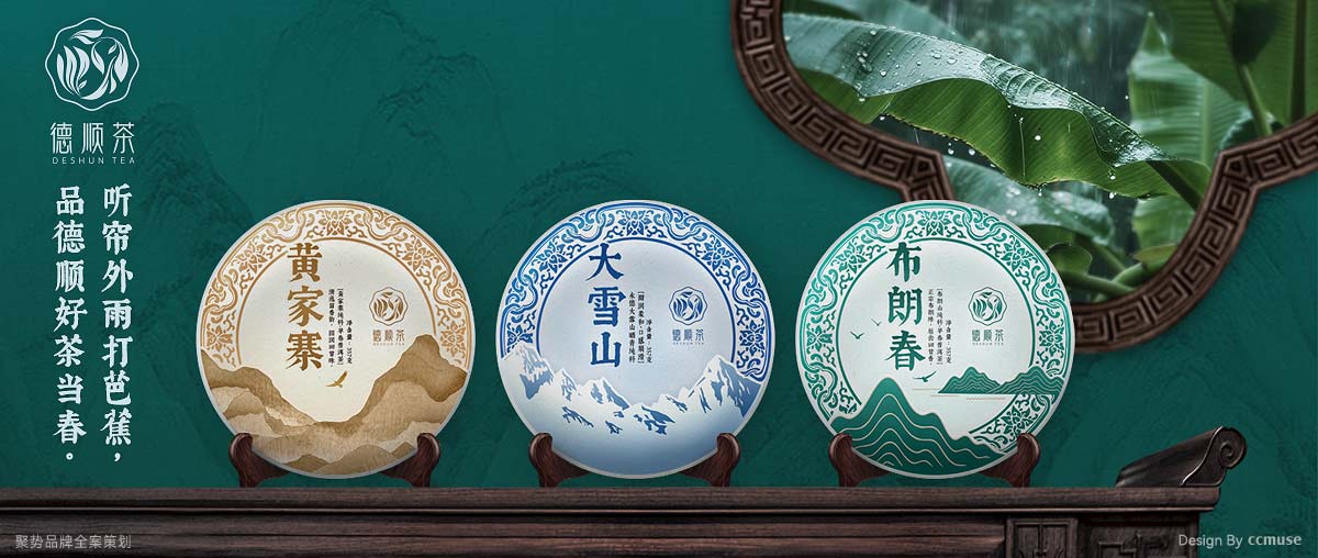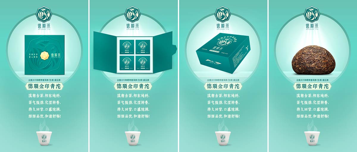 德顺茶【德顺尚礼】系列茶饼是品牌感极强的理念+创意设计,传递人文情怀,整体视觉构成均衡,充分传达茶品特色。茶不仅是健康饮品,更是有社交功能的礼仪载体。