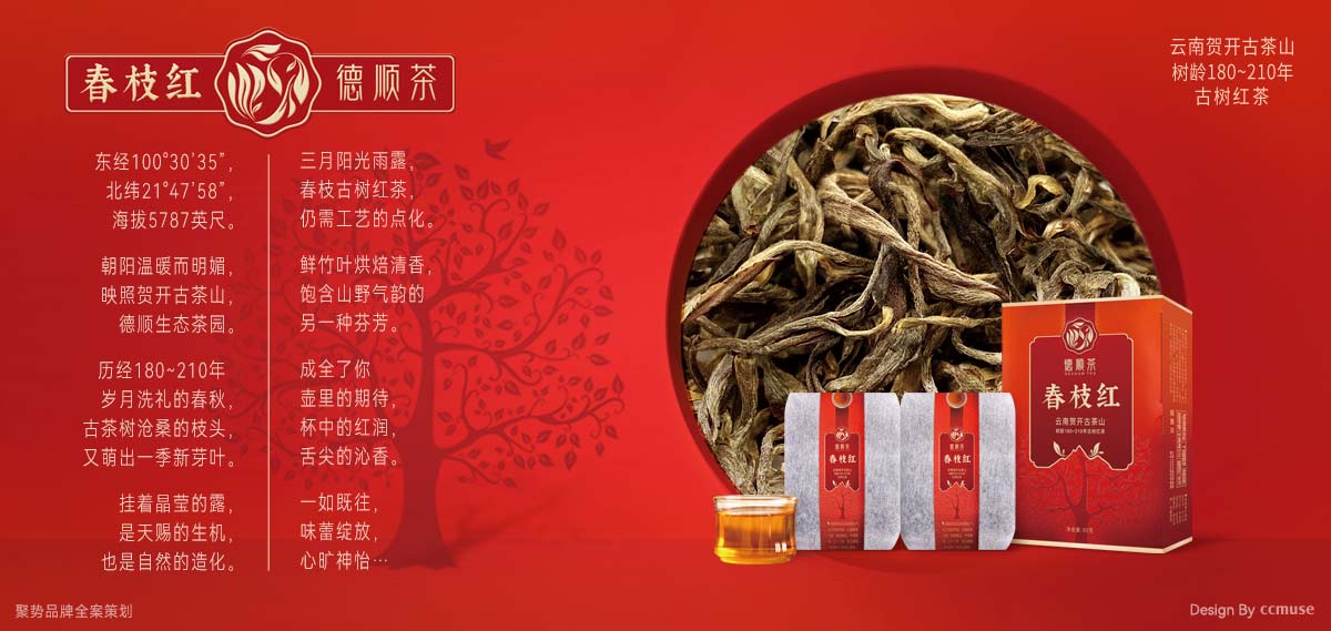 【德顺·春枝红】来自云南贺开古茶山的德顺生态古树茶园,是平均树龄180~210年的古树春枝红茶,原叶条索分明,茶汤金黄通透,其中茶多酚、氨基酸等营养物质含量丰富,口感甘冽香醇,回韵甘甜爽口,适合四季品饮,是一款有淡淡竹香的滇南地道古树红茶。