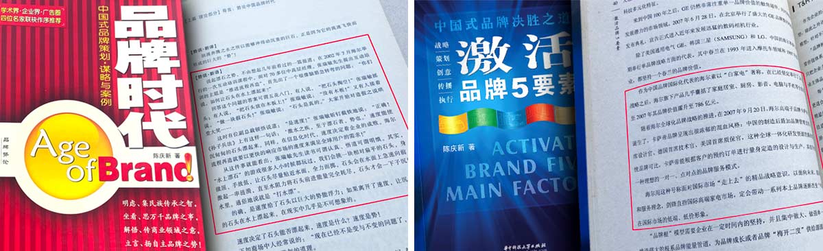 聚势品牌创始人陈庆新在其《品牌时代:中国式品牌策划与案例》、《激活品牌五要素》等著作中曾多次提及海尔的品牌之道、高端品牌策略、出海战略等,在剖析全球家电巨头GE与海尔的品牌模型(品牌树与品牌根)时介绍了两者的差异。