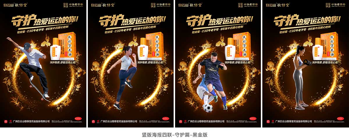 聚势核心团队以一站式品牌创意整合项目的策划思路,为敬修堂跌打风湿大品类(跌打万花油&麝香跌打风湿膏)策略加持、创意赋能、制作加分,全面专业化服务支持,配套系列化视觉创意、终端平面广告、营销互动及整合传播建议等,实现合作共进。